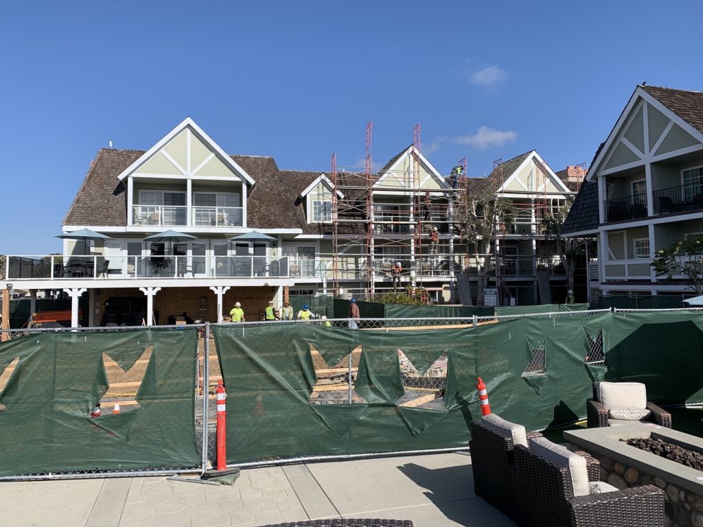 Commence mid-March and the sudden impact of Coronavirus. Like many other hotels and resorts, we closed our doors beginning April 1. During the closure, we took advantage of the empty resort to complete the west-side of the Hotel balcony project, started the Elm Condominium balconies for the same fascia repair work, tented both Condominium buildings, made progress on the pool re-build, and started the exterior walkway demolition between the Hotel and Oak Condominium building. Phew!