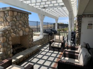 Skipping forward to 2020; phase 4 started in September 2020 with closures of the 1st floor of our Oak condominium building, courtyard, fire pits, and adult Jacuzzi. The Oak building 1st floor was closed off for several months as the interior corridor was removed and new waterproofing was laid down on the top side of the garage. Once waterproofing was tested and approved, new concrete was laid. In addition to re-sealing the waterproofing, we added a new fire pit and two (2) bbq grills at the ocean end of the hallway. The Oak 1st floor condominiums are open- this waterproofing was completed in January/February 2021. Check out the pictures below to see how great of a space this is!