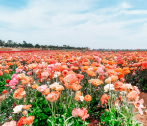 Need to update your Instagram or Facebook feed with some new content? We highly recommend visiting the Flower Fields at Carlsbad Ranch! Opening in early March (normally around the 1st) into May, the rolling hills just east of Carlsbad Inn Beach Resort are transformed into one of the most beautiful and organized displays of natural colored giant Tecolote Ranunculus flowers. The annual bloom lasts around 6-8 weeks and is one of Carlsbad’s official ways of announcing the Spring season. Enjoy an afternoon perusing through the neatly organized rows of these wildly colorful flowers- your inner self and social media followers will not be disappointed!